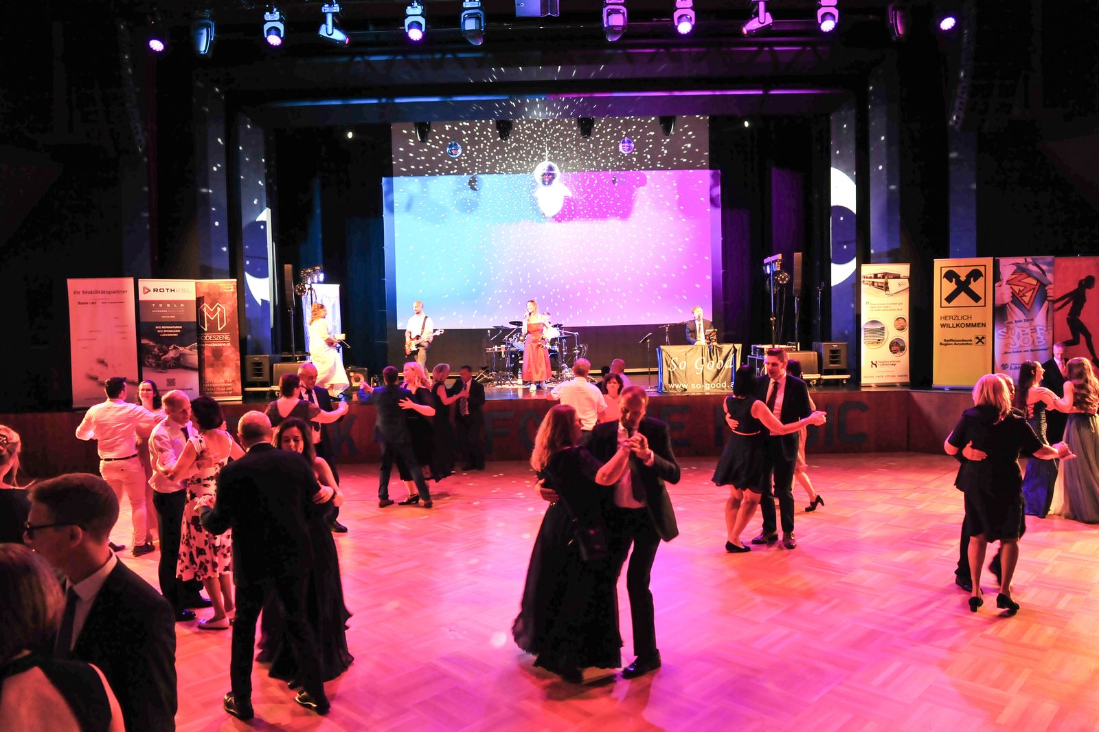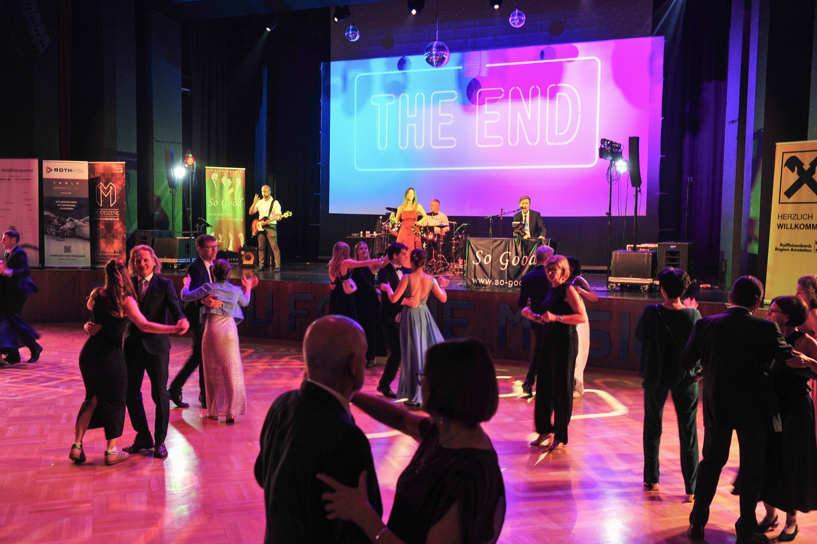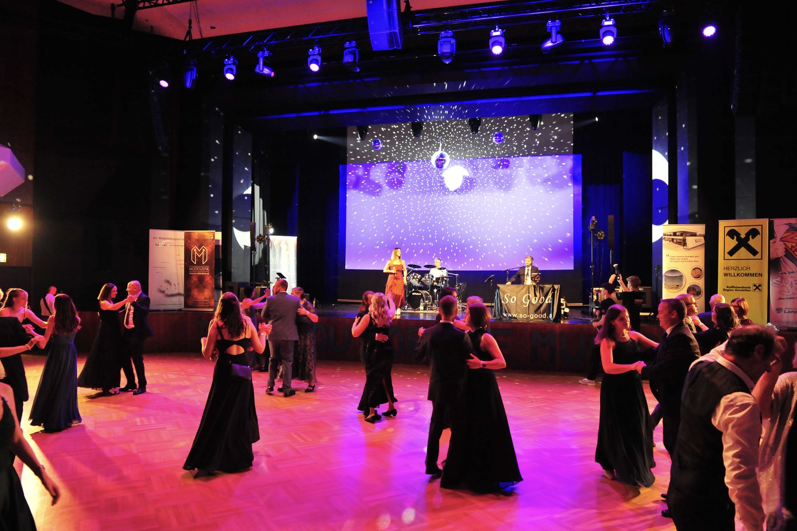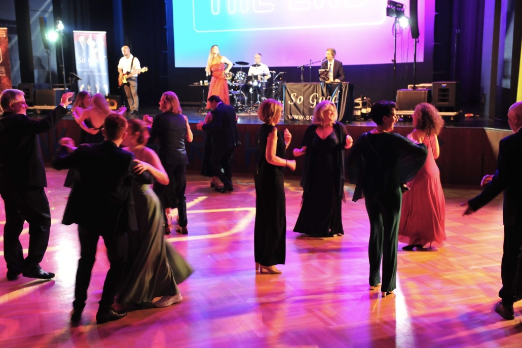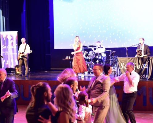 Und das war eine echt tolle Veranstaltung, die die Schülerinnen und Schüler der BAfEP Amstetten da auf die Beine gestellt haben. Sehenswertes Rahmenprogramm mit Balleröffnung, einer coolen Mitternachtseinlage (ganz entsprechend dem Ballmotto „Jetzt gemma ABBA“ mit vielen ABBA-Songs), einer Tombola mit vielen tollen Preisen – und natürlich mit Livemusik von So Good.