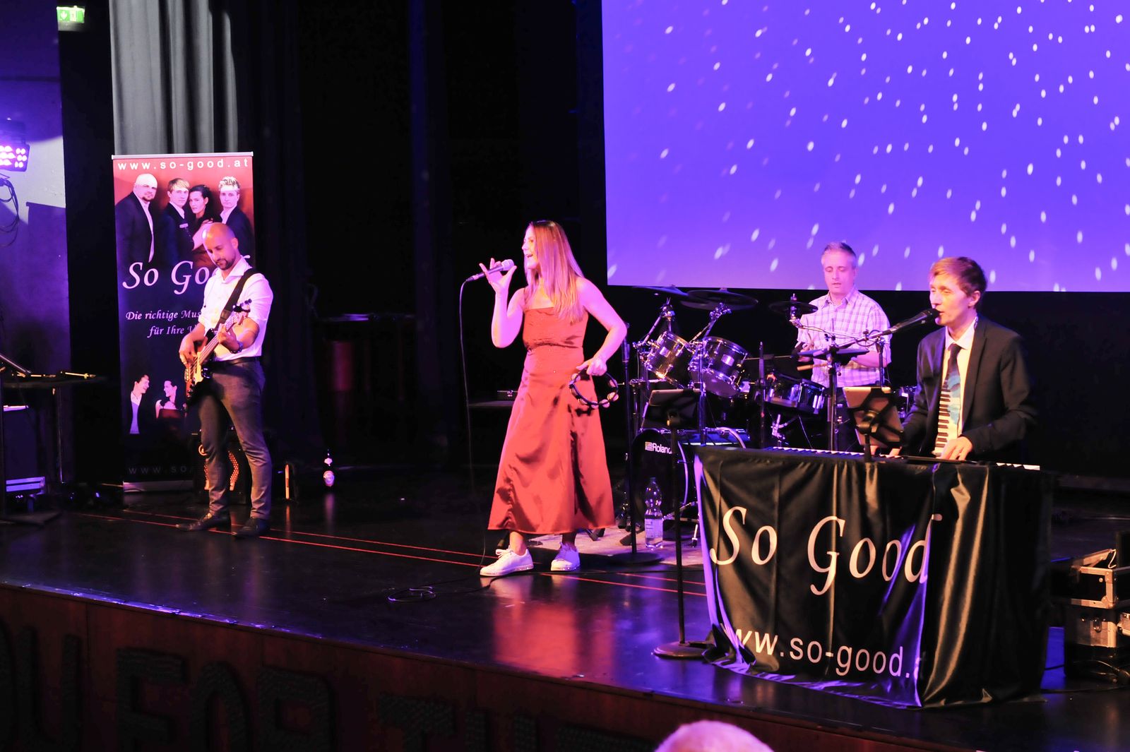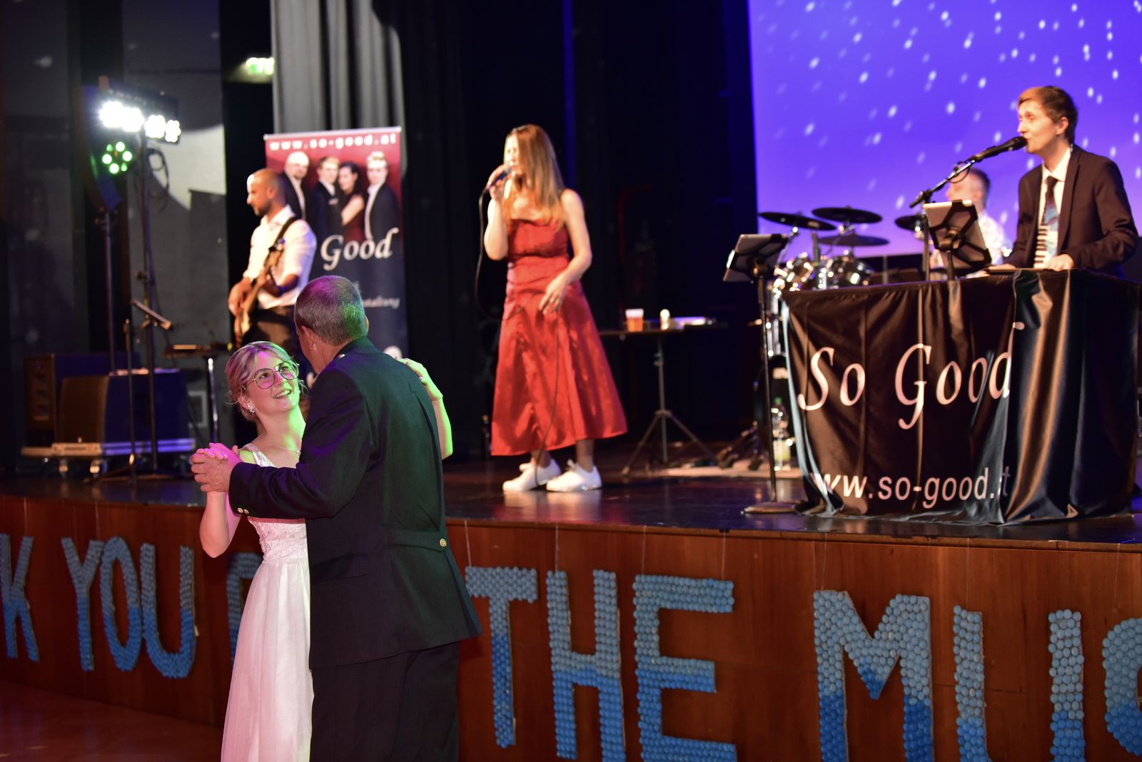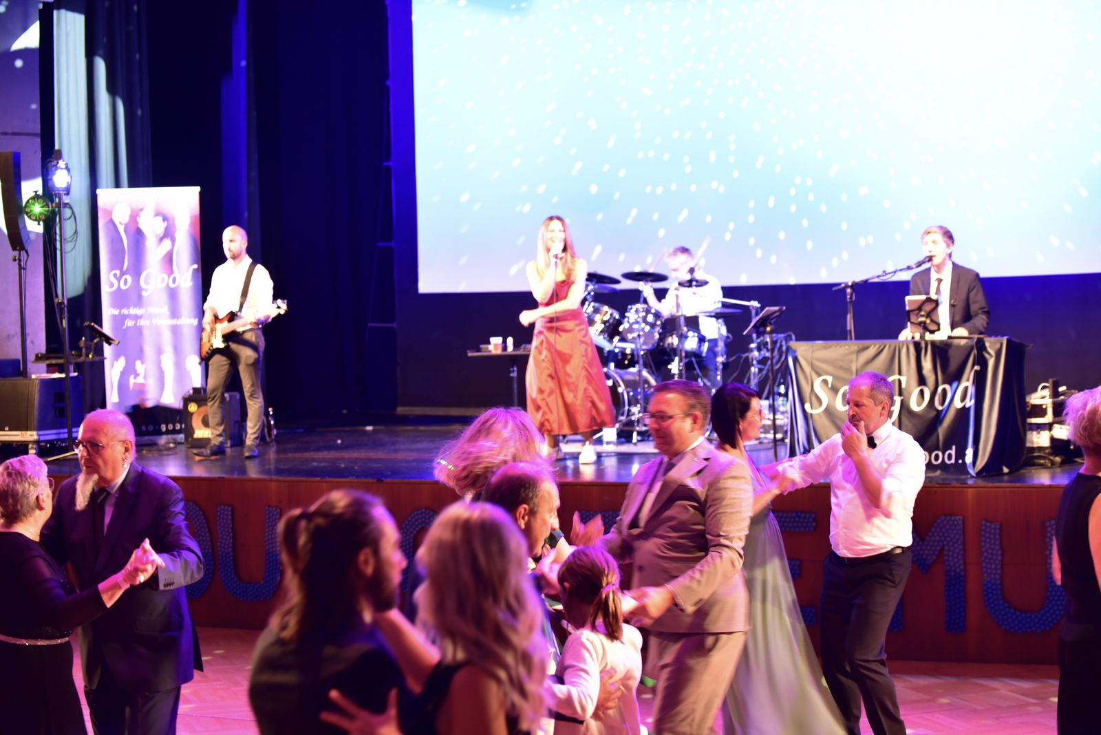 Und das war eine echt tolle Veranstaltung, die die Schülerinnen und Schüler der BAfEP Amstetten da auf die Beine gestellt haben. Sehenswertes Rahmenprogramm mit Balleröffnung, einer coolen Mitternachtseinlage (ganz entsprechend dem Ballmotto „Jetzt gemma ABBA“ mit vielen ABBA-Songs), einer Tombola mit vielen tollen Preisen – und natürlich mit Livemusik von So Good.