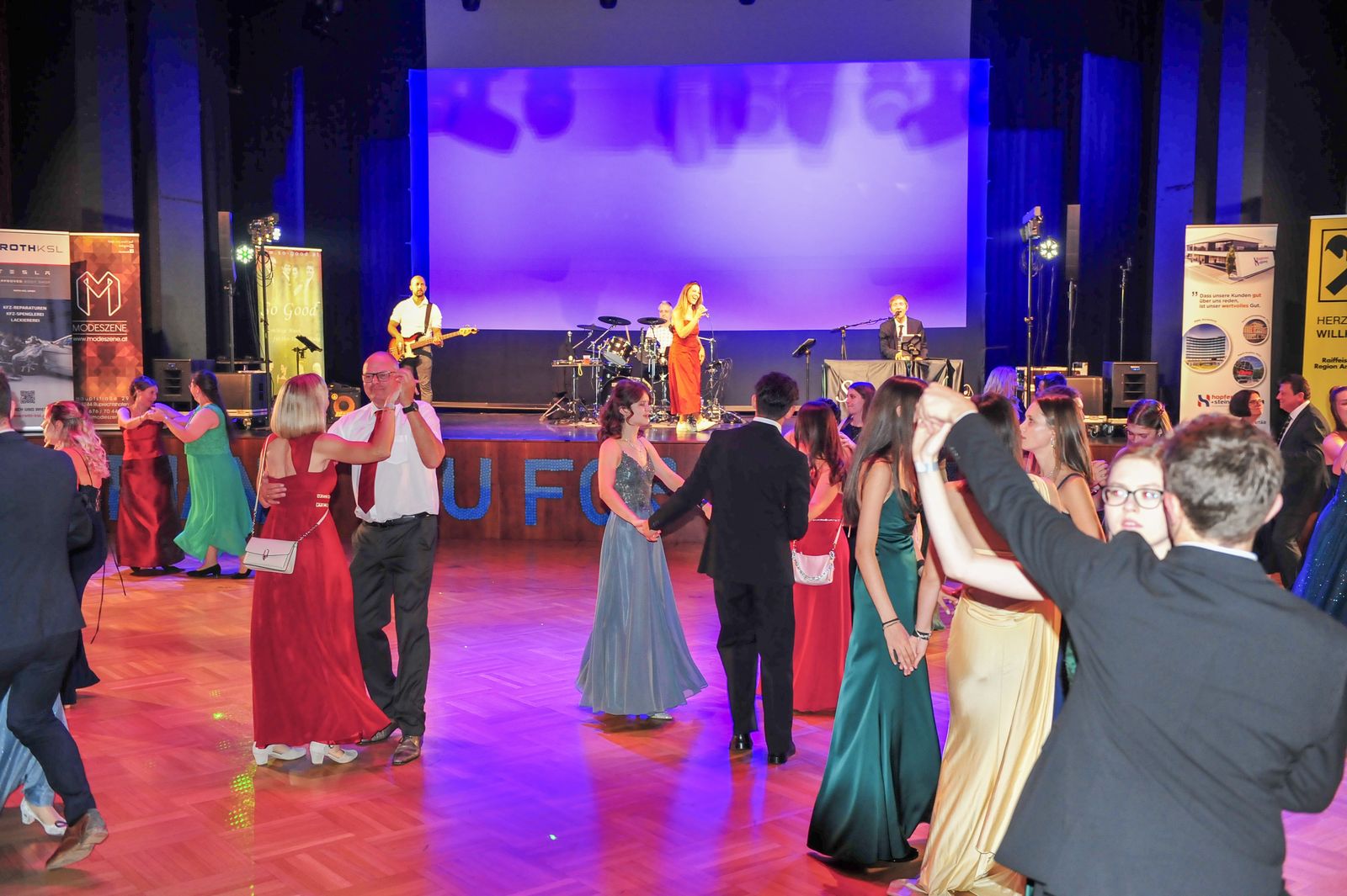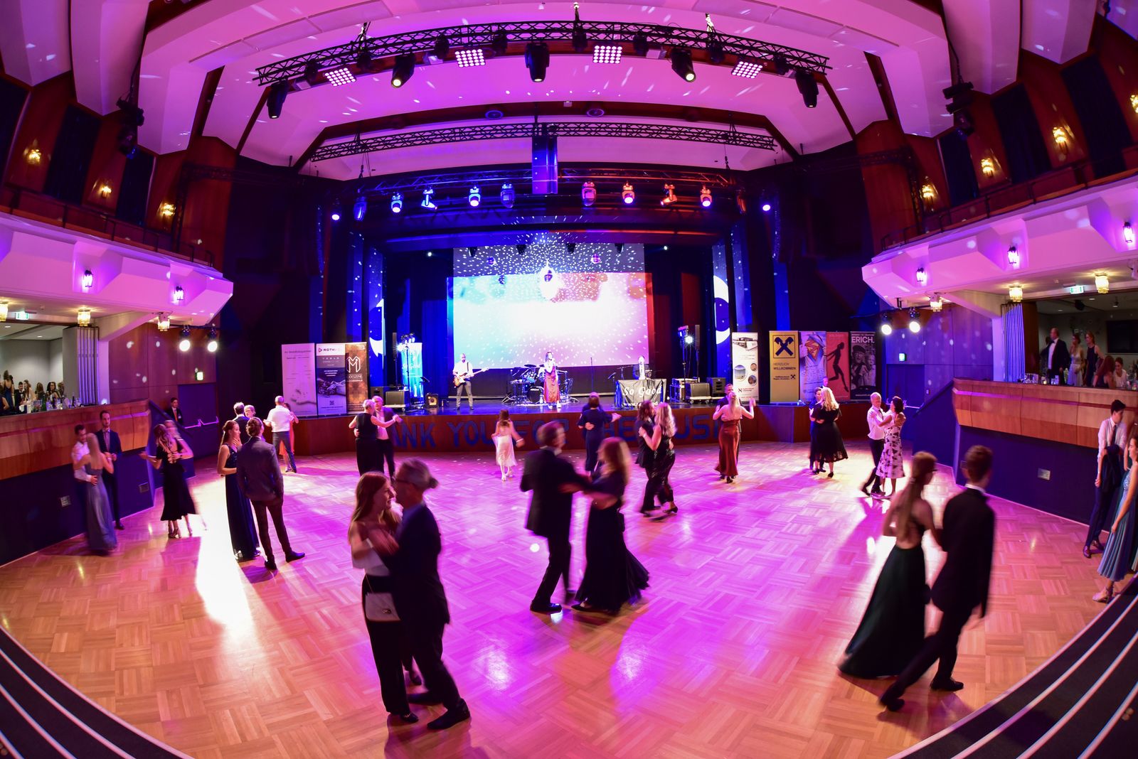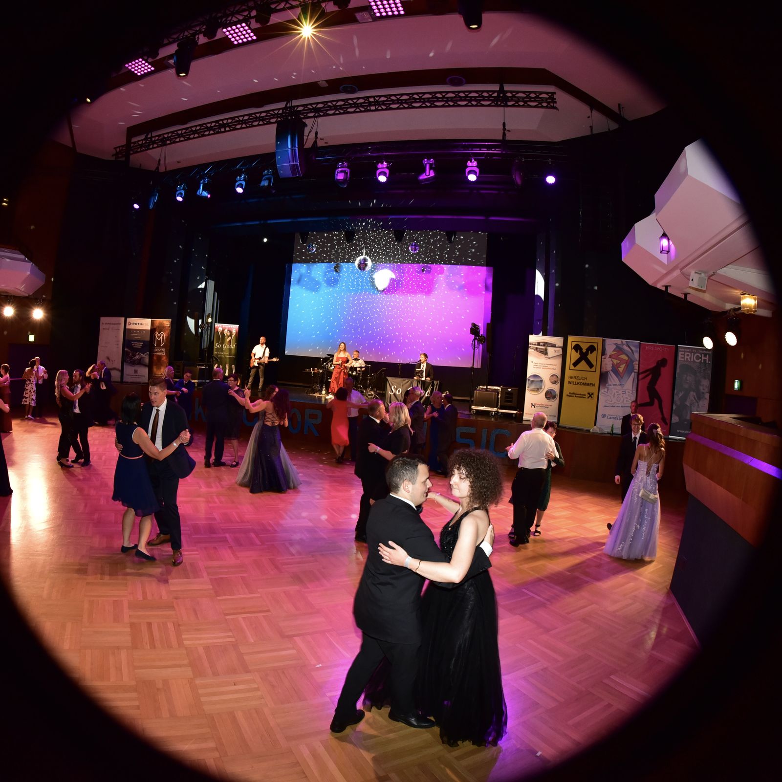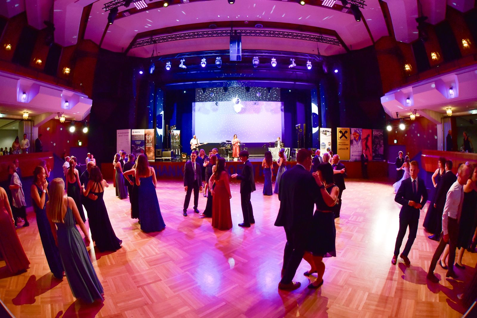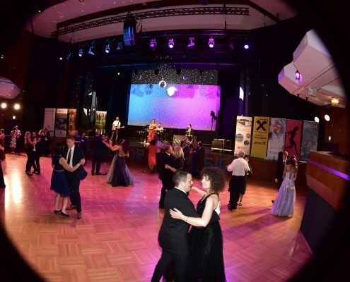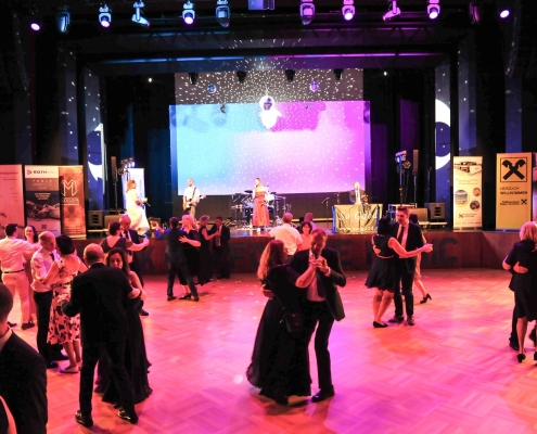 Nach der Eröffnung und des Balles um 20:30 Uhr starteten wir in den Abend, natürlich dem Rahmen entsprechend einem Walzer. Danach stand wie immer unser bunter Musikmix für Maturabälle am Programm: Klassische Tanzmusik á la Walzer, Rumba, Samba usw. gemischt mit flotter Pop- und Unterhaltungsmusik. Und später dann natürlich auch Partymusik.