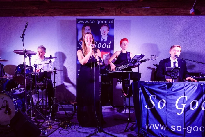 Bei der Hochzeitsband So Good stehen für euch 4 Musiker (inklusive Sängerin und Sänger) mit langjähriger Bühnenerfahrung bereit. Seit mehr als 20 Jahren sind wir auf Hochzeiten in Deutschland, Österreich und der Schweiz unterwegs und wissen genau, worauf es bei einer unvergesslichen Hochzeitsfeier ankommt: Auf einen Musikmix, der alle Gäste begeistert.