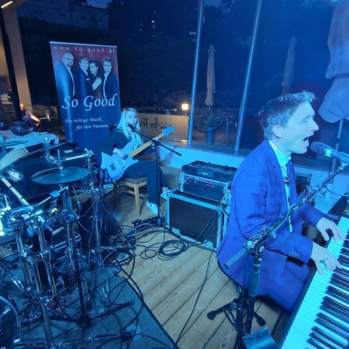 Dabei setzen wir auf echte Livemusik in angenehmer Lautstärke. Playbacks oder starre Playlists darfst du von uns nicht erwarten, dafür aber ein individuell für jede Hochzeitsparty in Niederösterreich abgestimmtes Programm. Egal ob viel Tanzmusik gewünscht ist oder der Party ab dem ersten Song, mit So Good liegst du richtig. Oder vielleicht soll auf deiner Hochzeit die Band auch dezente Hintergrundmusik und Barmusik spielen? Alles ist möglich!